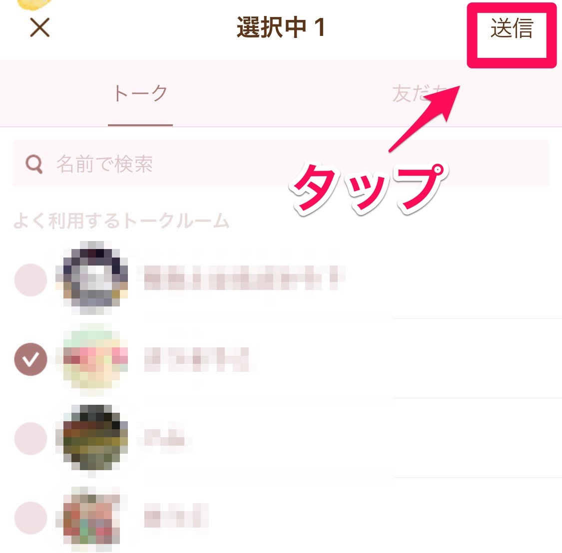 右上にある「送信」をタップすると、選択した人(トークルーム)にデータが送信されます。