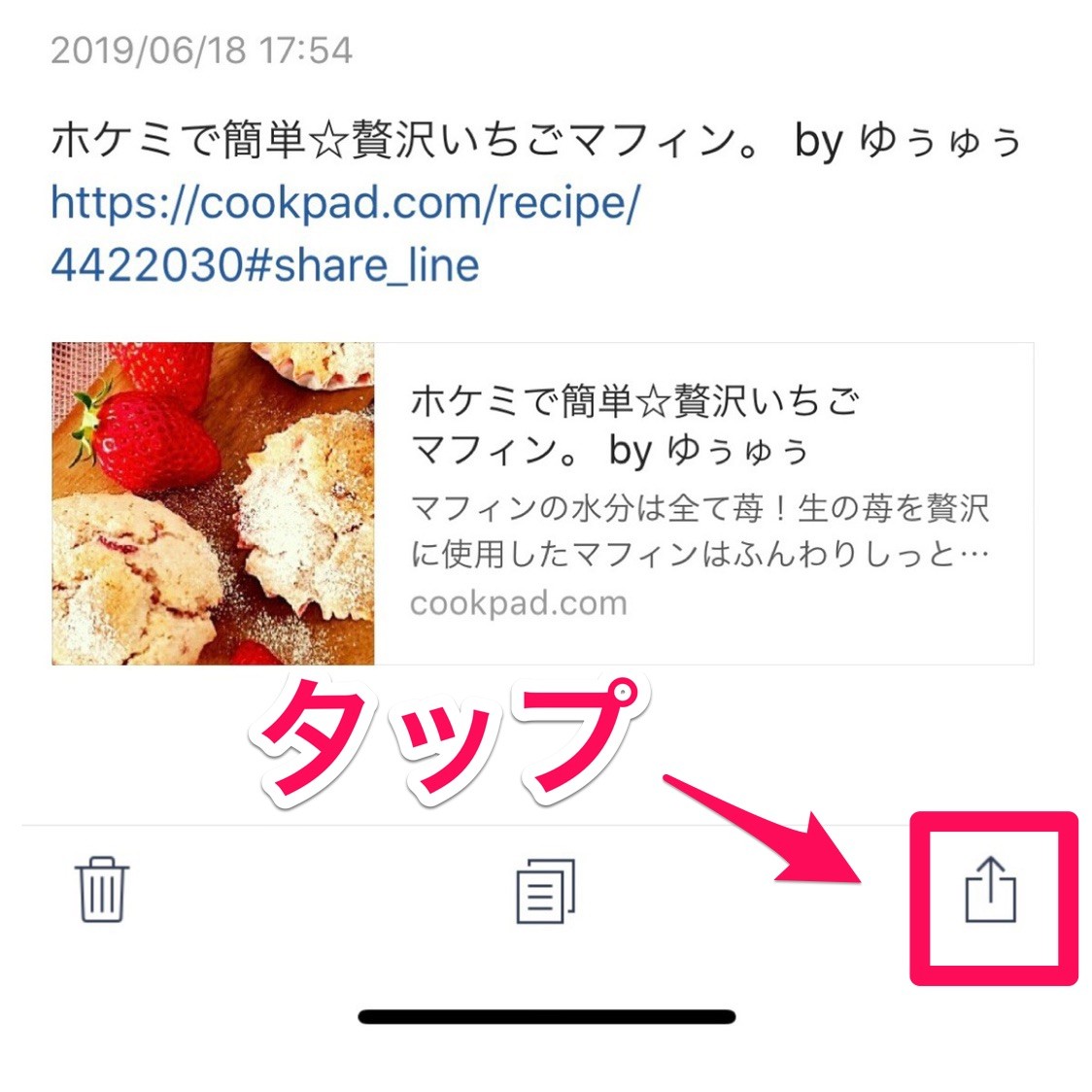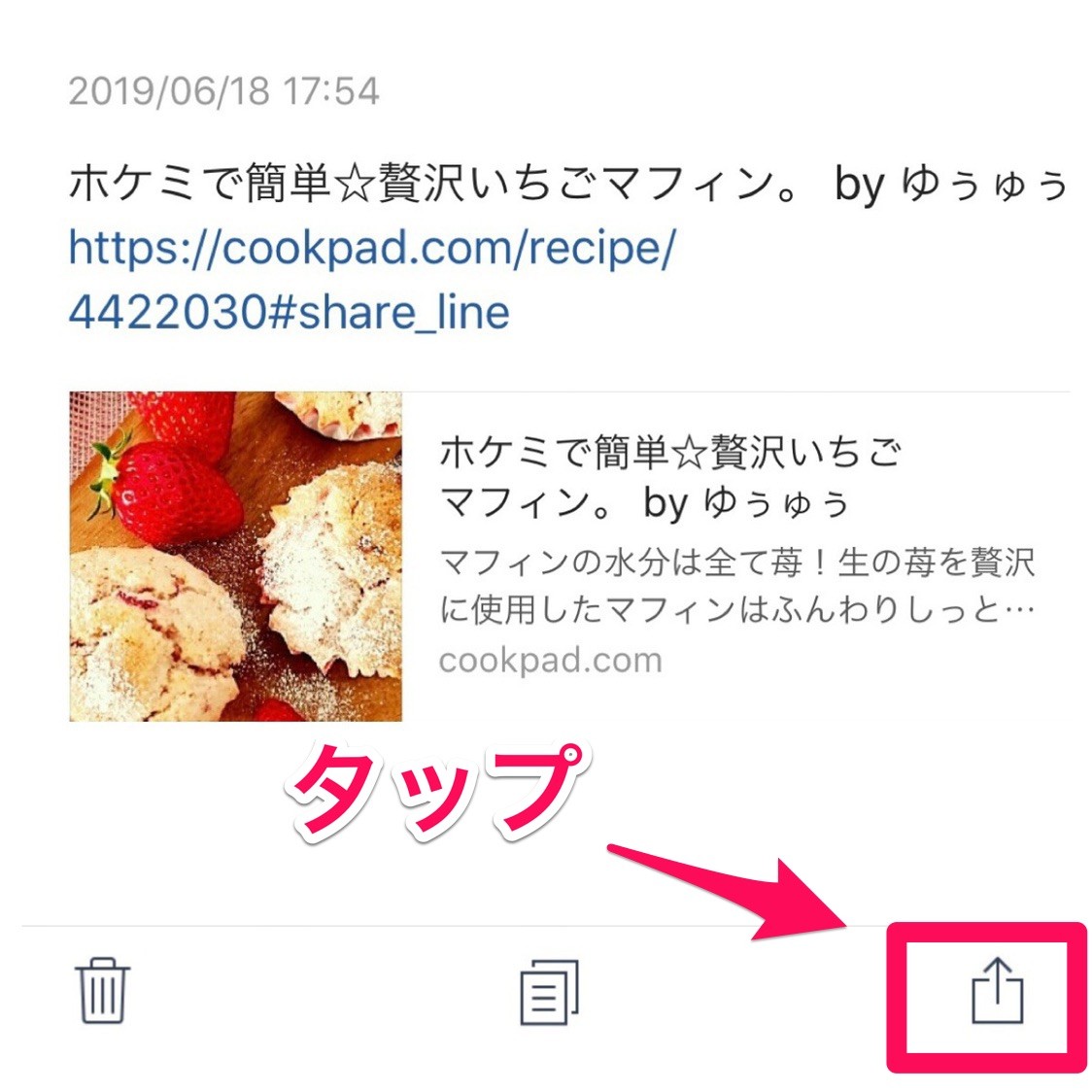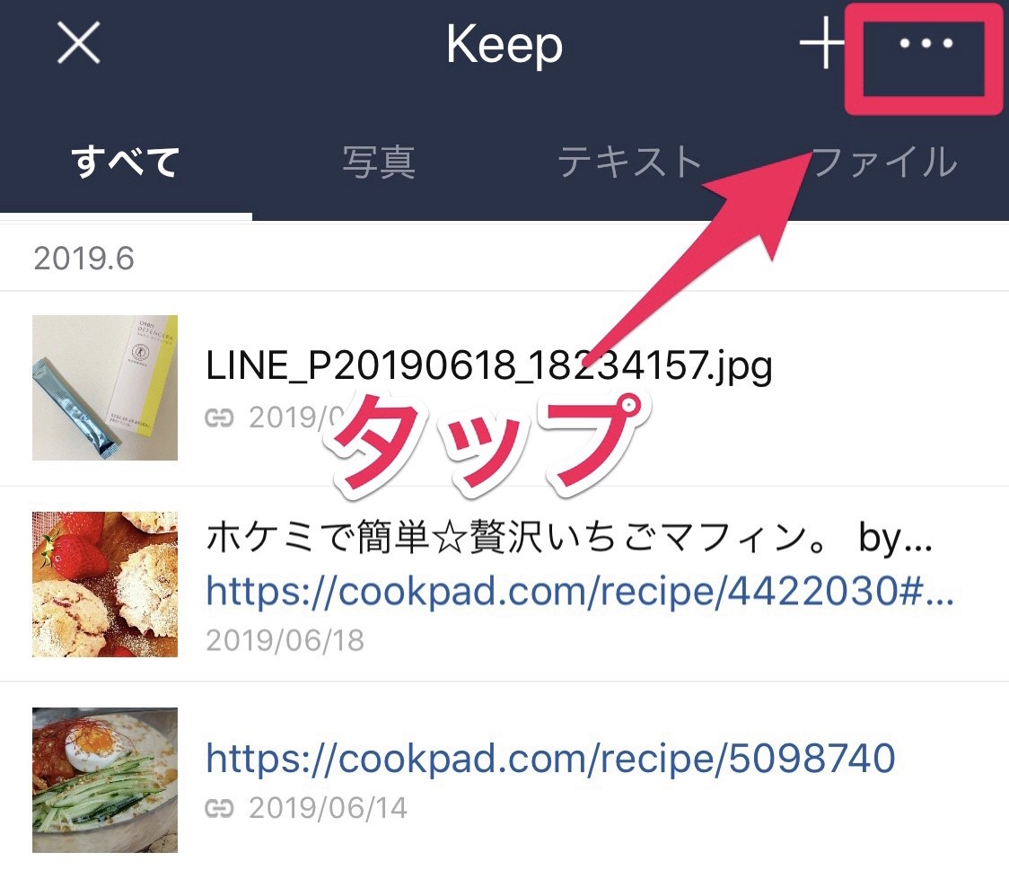 LINEのホームからKeep画面を開き、共有したいデータをタップします。