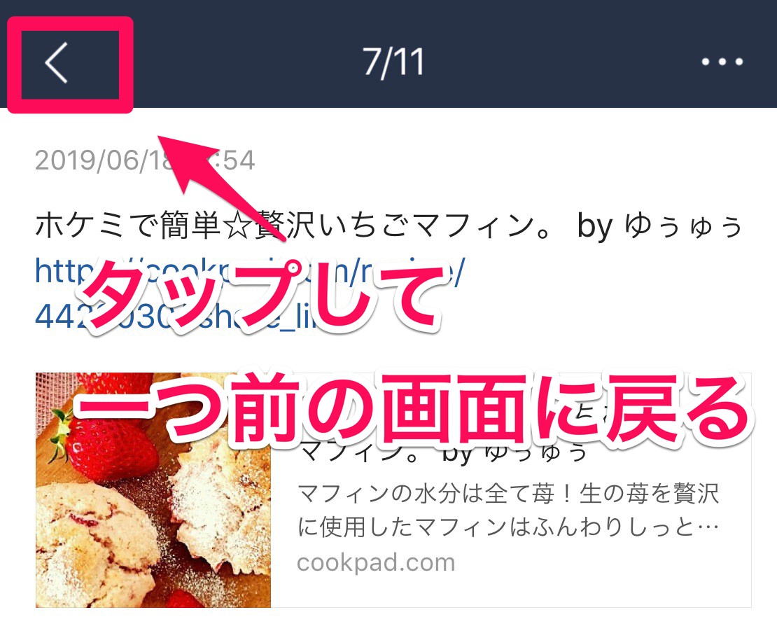 画面上部の左側にある「<」をタップし、1つ前の画面に戻ります。