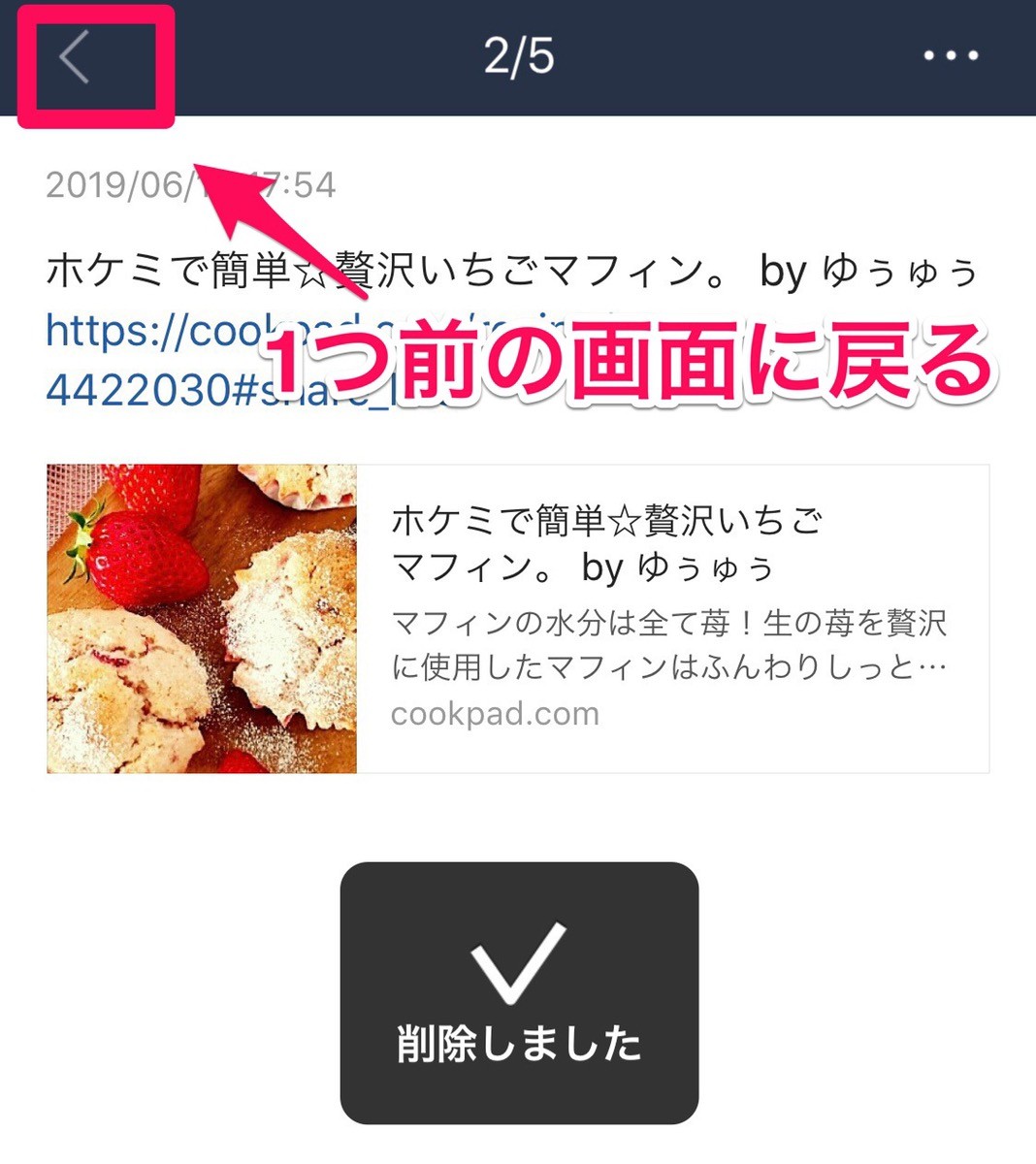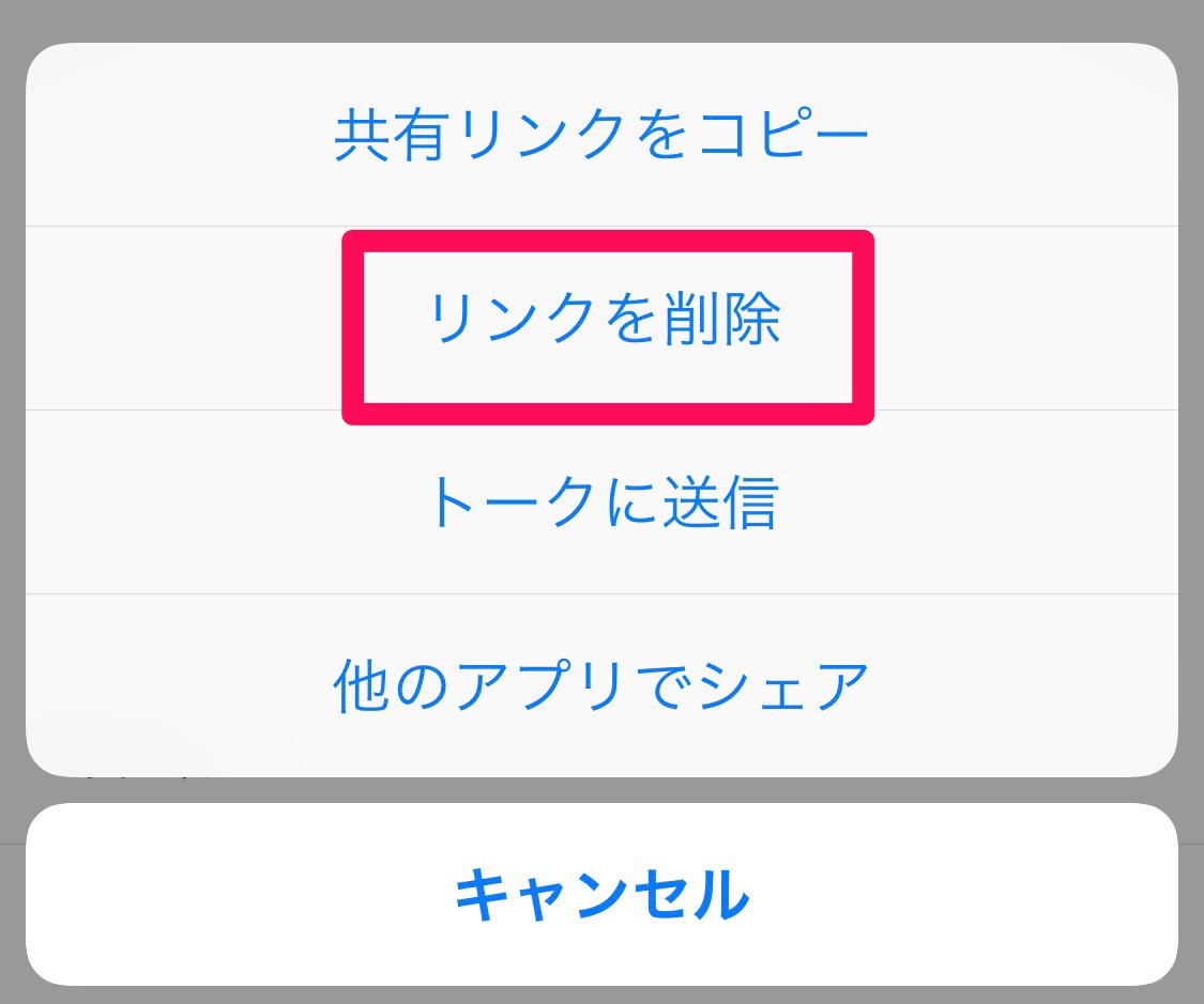 共有リンクの削除が完了すると、「削除しました」と表示されます。左上の「<」をタップして1つ前の画面に戻り、リンクが解除されたことを確認してみましょう。