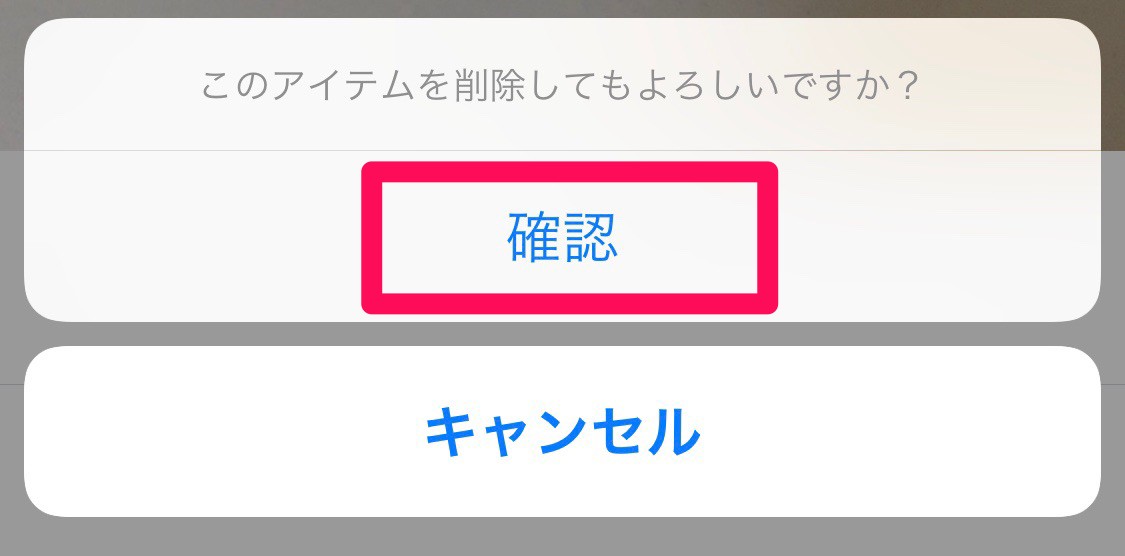 「このアイテムを削除してもよろしいですか?」と表示されるので「確認」をタップし、データを削除します。