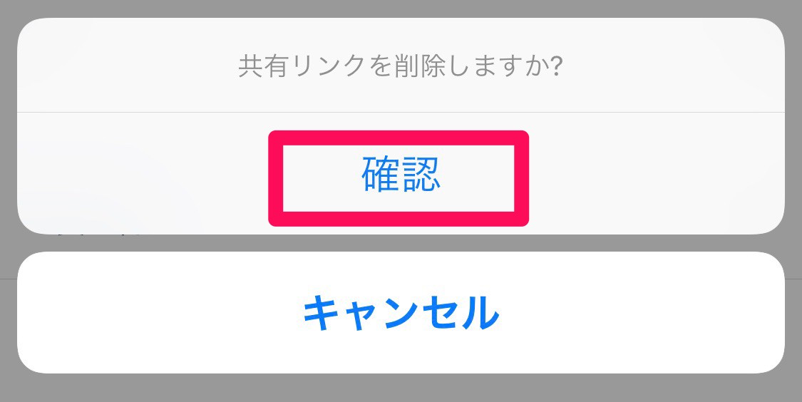 「共有リンクを削除しますか?」と確認画面が表示されるので、「確認」をタップします。