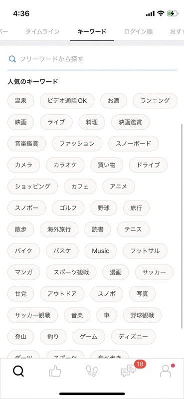 ゲーム好きの恋人を見つけたいなら、フリーワード検索ができるマッチングアプリを使うのもおすすめです。自由なキーワードで検索できる機能を活用すると、コミュニティやカテゴリーよりもさらに細かい条件で相手を絞り込めます。