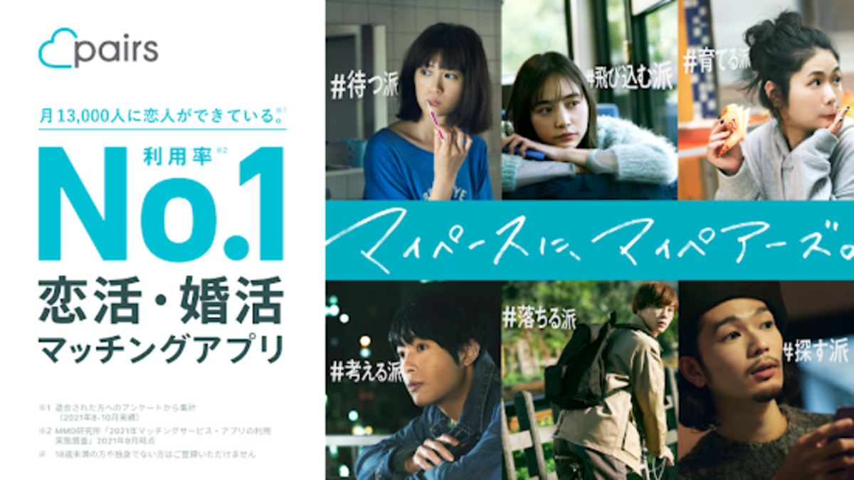 ペアーズはユーザー数が1500万人と、国内でも最大級の規模を誇るマッチングアプリです。会員数が多く知名度も高いので、田舎に住んでいるユーザーも多く、希望の相手を探しやすいです。年齢確認や悪質ユーザーの監視などの管理体制も万全なので、マッチングアプリ初心者の方でも安心です。