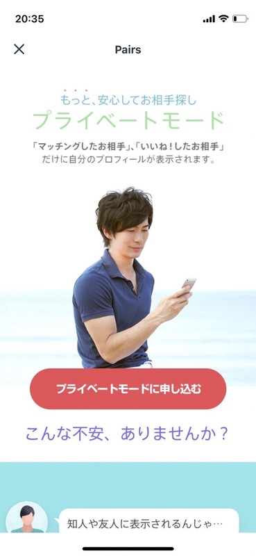 ペアーズが人気を集めているポイントとして、プライベートモードで身バレを防止できる点が挙げられます。プライベートモード機能を使うと、不特定多数の異性からプロフィールを見られることがなくなります。
