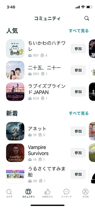 顔写真なしで出会いたいなら、コミュニティ機能があるアプリを選ぶと便利です。コミュニティ機能とは、同じ趣味を持っている人が集まって異性を探せるシステムのことです。
