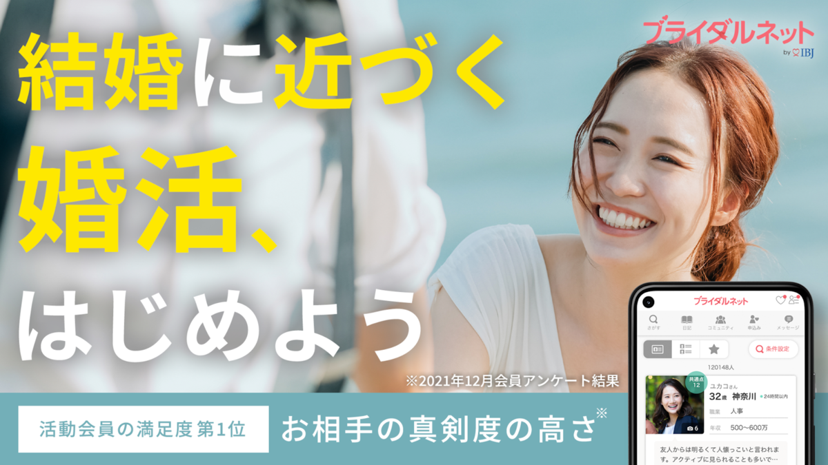 「ブライダルネット」は、結婚相談所が運営している婚活マッチングアプリです。サービスの利用料金を男女ともに有料、かつ同額にすることで、真剣度の高いユーザーが集まっています。