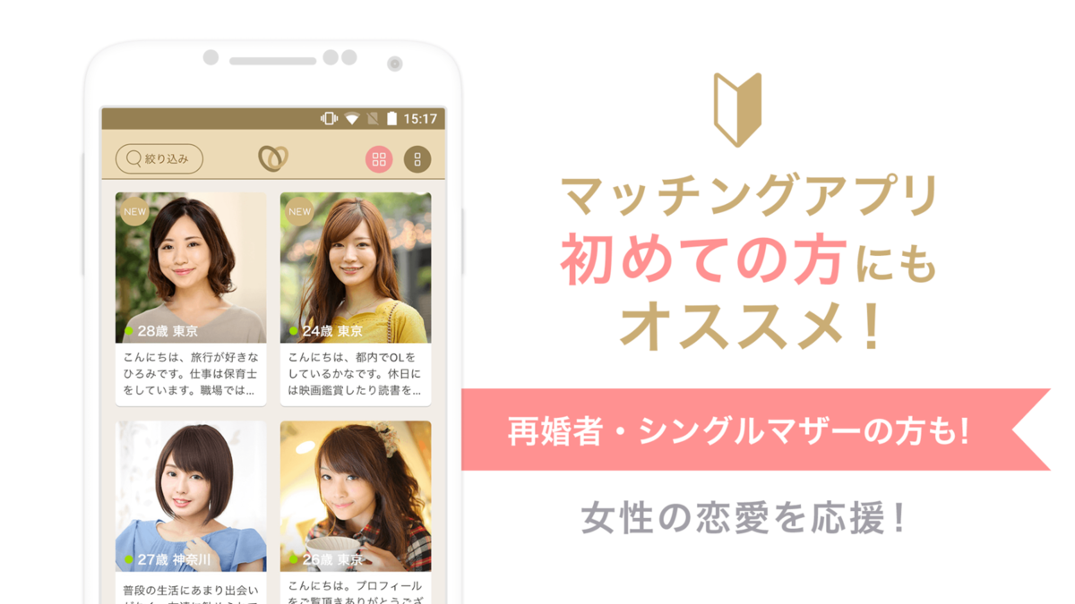 シングルマザーにとって、相手が恋愛や結婚に真剣であることは非常に重要です。婚活、あるいは再婚活を主目的とするマッチングアプリなら、シングルマザーのニーズに合った出会いが見つかりやすくなります。