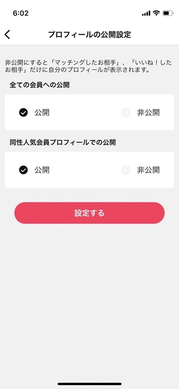 - 「公開」か「非公開」を選び、「設定する」をタップします。