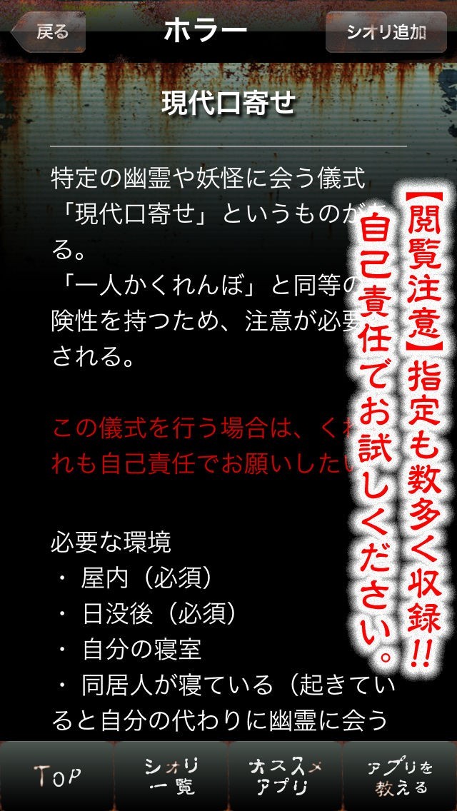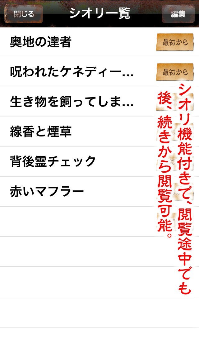 ・シオリ機能でお気に入りの都市伝説をシオリ一覧として文章の途中でも保存可能。 気になった伝説を後からでも閲覧できます。