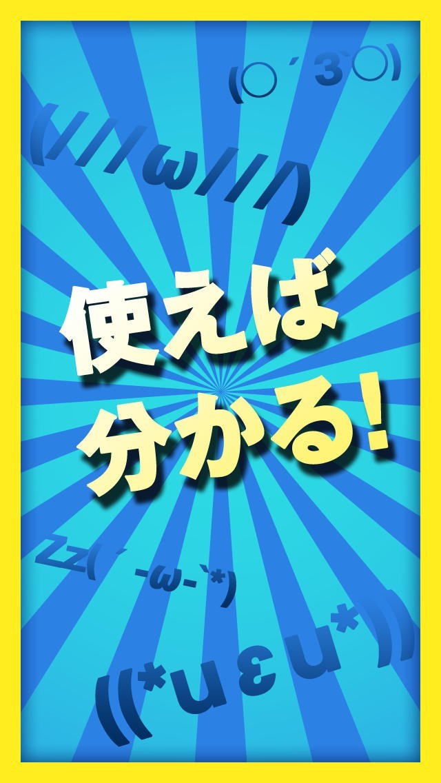 多数の顔文字を収録しているアプリなのですが、需要の高いシンプルな顔文字を チョイスしています。なので「顔文字を集めたいけど小難しいものはいらない」という人に喜ばれる内容です。絵文字は、各カテゴリーに分けられていて、お気に入り登録することもできて、お気に入り登録も可能としています。ですから、使いたい時にすぐ検索できるのです。LINEやTwitter、Facebookといった SNSで顔文字を使いたい時に本アプリを 開いてみると良いでしょう。