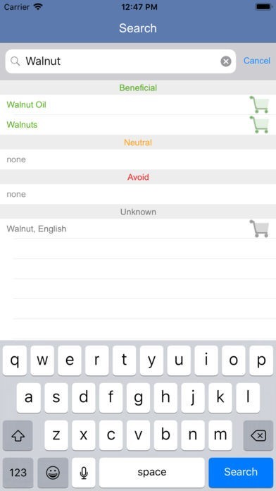 App Storeより引用This is the only official Blood Type Diet® app released by Dr. Peter D’Adamo, international best selling author of the Eat Right For Your Type® book. Whether you are new to the Blood Type Diet® or a long time supporter, this app provides the food lists that are Right for Your Type® at your fingertips. It’s convenient when shopping, traveling, dining out, or simply when you are at home and don’t want to check the Eat Right For Your Type® book. The Blood Type Diet® app lists the Beneficial, Neutral, and Avoid foods for all four blood types.