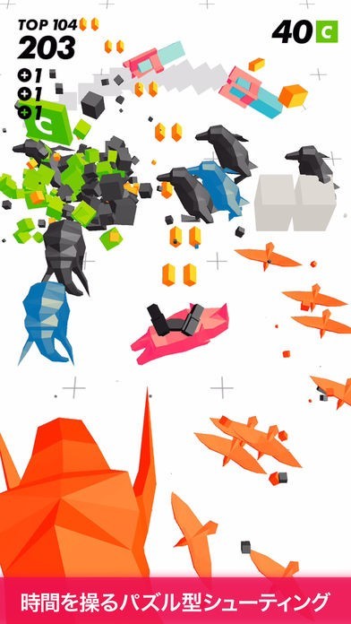 操作を止めると世界がストップ!スコアを溜めて販売機を増やし、強力な武器や自機キャラクターを手に入れよう!