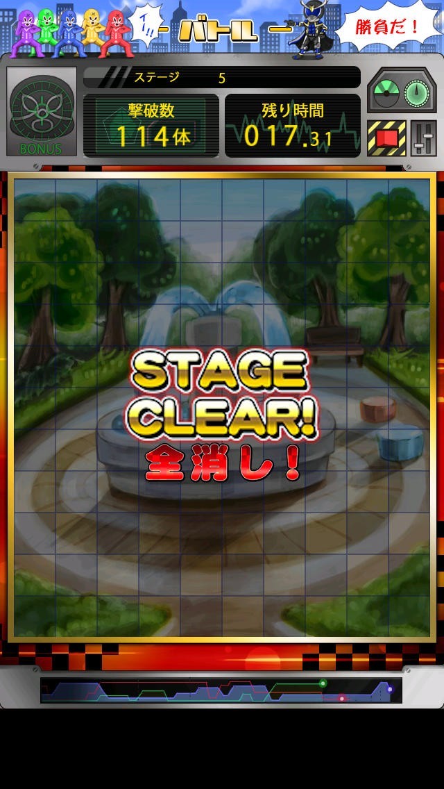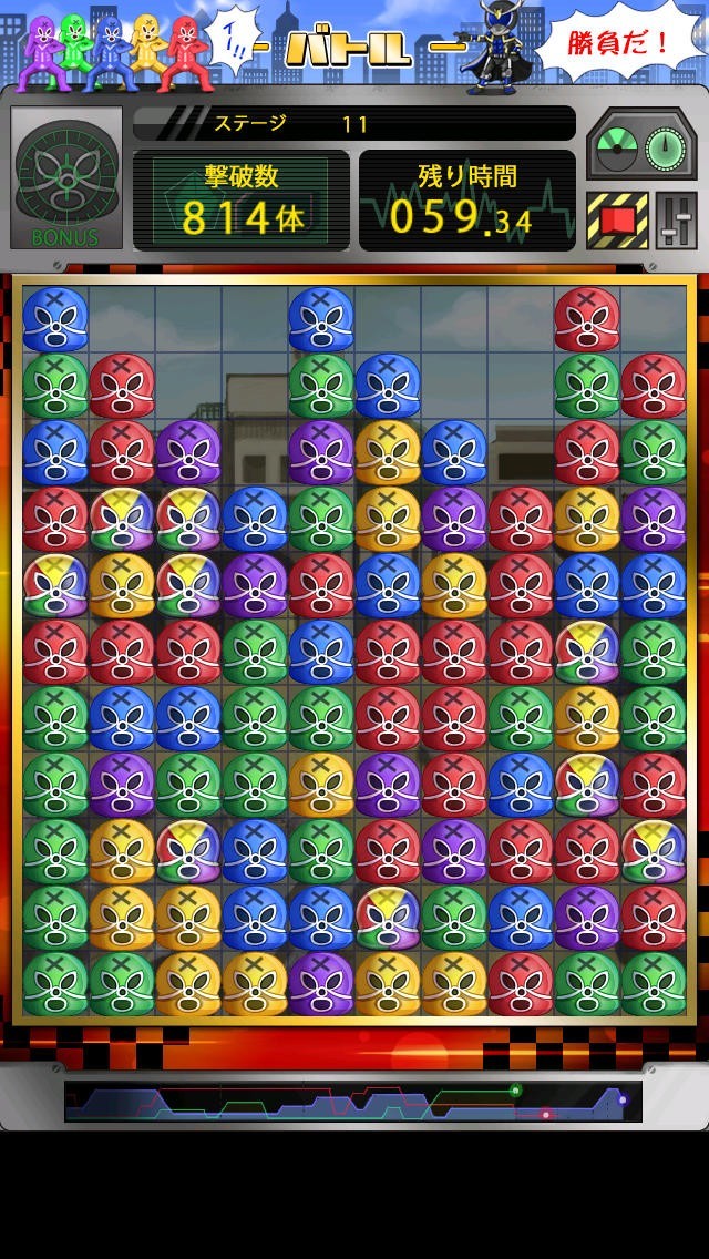 戦隊ヒーローや特撮ヒーローなどが大好きという人にぴったりなパズルゲームアプリが「パズルDEイィー!」になります。このアプリは崩壊戦士セムディオンとなって、侵略者である鮫亀秘密結社チョッカーを倒していくパズルゲームアプリとなっていて、操作しているチョッカーブロックと同じ色のブロックをどんどんタップすることでチョッカーを倒すことができるようになっていて、同時に倒すことが出来たチョッカーが多いほど高得点を狙うことが出来ます。用意されているステージは全部で25ステージとなっていて、5ステージをクリアするごとに背景のデザインが変化していきます。