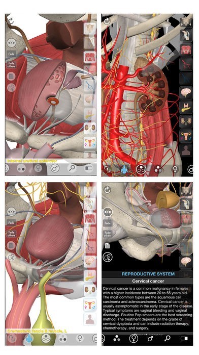 Learn reproductive and urinary systems anatomy with hundreds of realistic anatomical models/structures. An all-in-one solution for learning clinical, topographic and systems-based anatomy. The 3D anatomy models can add important cognitive input for understanding the spatial relationship between anatomical structures and landmarks leading to an increased retention of knowledge. The app includes skeletal system and connective tissues as bonus.