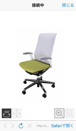 ・360°Viewシミュレーション機能で、フリックするとイスを回転できます。