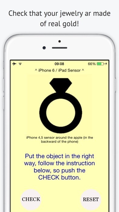 Do not approach the phone magnets, speakers, microphones or any object capable of altering the electromagnetic field, because the values may be distorted. Detects only objects in gold and metal. If you put an object that is not a metal or gold object, the app report ever that the object is in gold. You have to put only gold or metal object.