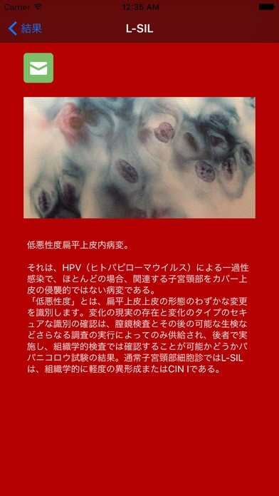 成果の種類ごとに詳細な説明を参照し、子宮頸部の細胞の変化以下の顕微鏡画像を表示することが可能である。これは、電子メールを介して、これらの結果を送信したり、過去の検査を格納することができる。