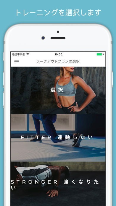 時間とトレーニングのカテゴリーを自分で選んでワークアウトに挑戦