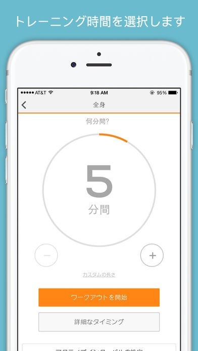 運動時間は任意で設定可能。帰宅後のちょっとした空き時間にも活用できる!