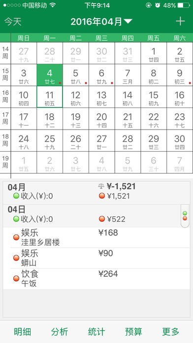 毎日の収入と支出を入力するだけで、カレンダー形式で収支の実績がすぐに分かります。予算を設定することができるので、目標金額と実績の差が明らかになり、次回の家計管理のヒントにできます。