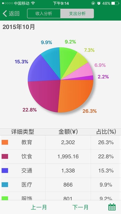 入力した支出データから自動的に円グラフを作成してくれます。支出をそれぞれのカテゴリーに分類してグラフで総支出を分かりやすく表示してくれるので一目で何にお金を使ったのかが分かります。