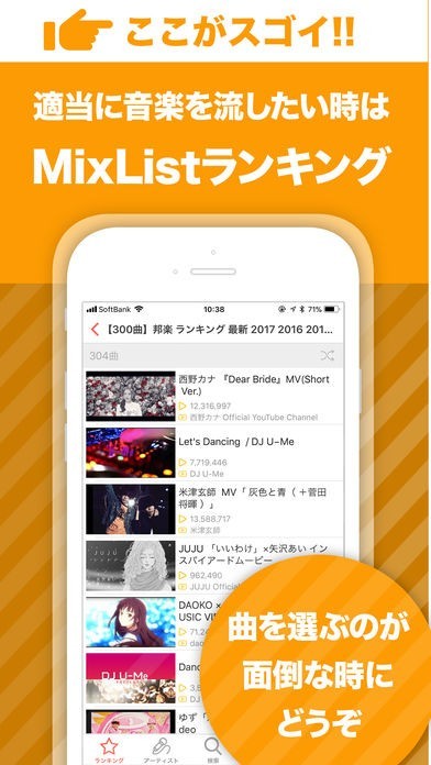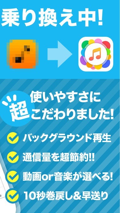 音楽動画を再生するときに、音楽と動画を合わせて再生するか、音楽のみ再生するかを選択することができるようになっているので、無駄な通信量を節約することが可能となっています。