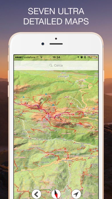 トポマップ、航空写真、ハイブリッドマップなどコンパスと組みわせて使用できる様々なマップの中から自分の位置や行きたい場所を確認する事ができます。また、ポジションファインダーではスタート地点を記憶し、最短の帰り道を教えてくれます。
