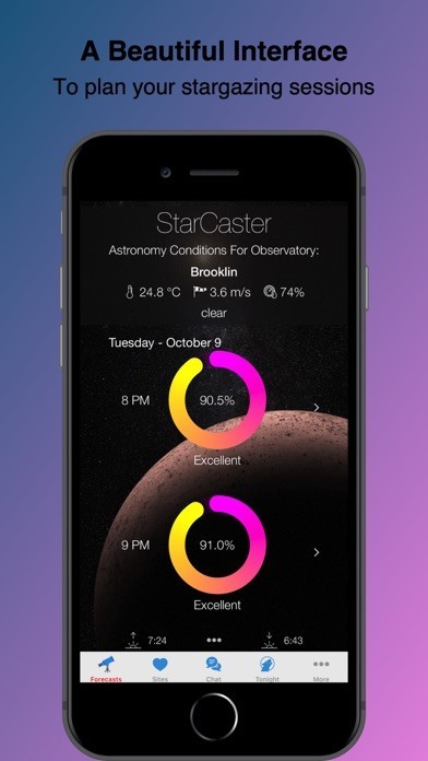 StarCaster is an intelligent forecasting app that helps you plan the perfect times for stargazing and night photography.
