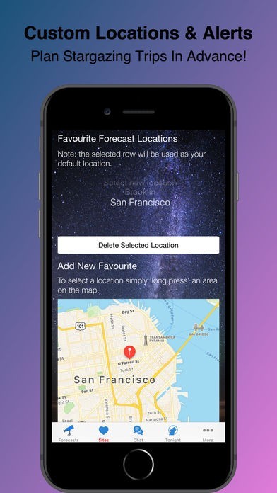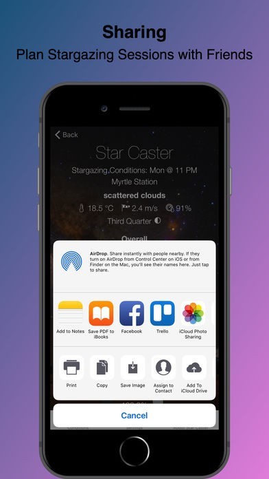 Alerts: StarCaster can alert you to when stargazing times will be optimal taking the guess work out of impromptu sessions and letting you focus on stargazing instead!