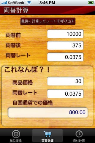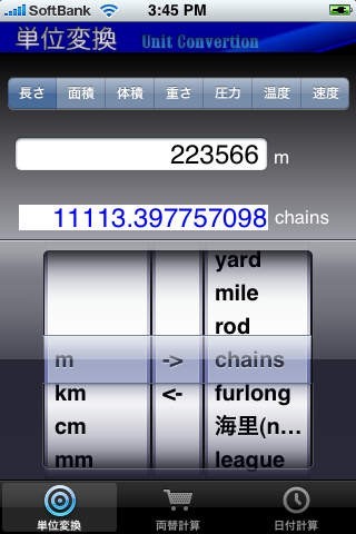 生活をしていてふと疑問に思う事無いですか。このアプリは長さ、面積、重さ、体積、圧力、日数(月数・年数)計算と、通貨両替計算を、数字を入れることによりスムーズに単位換算出来るソフトです。日々変化するレート。旅先でその日の通貨を他国の通貨に変換出来る点では海外に足を運ぶ方にとっては嬉しいアプリかも知れません。また時間の単位(秒、分、時間、日数)と入った単位変化を確認したいと思った時、数字を入れることによって瞬時に分かる。使える、手元に置いておきたくなるアプリです。