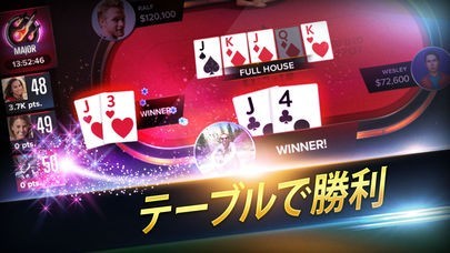 スマートフォンからポーカーゲームに参加しましょう。全額賭けて勝負をするか、降りるか。それともブラフをかけて敵の裏をかくのか。心理戦をマスターして世界トップクラスを目指しましょう。