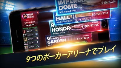 9つのポーカーアリーナでエキサイティングなプレイができる