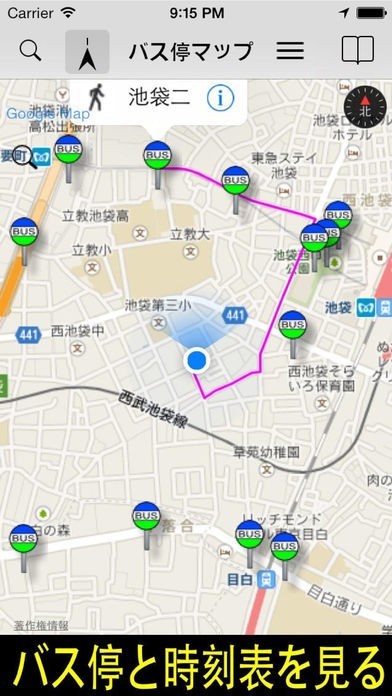 バス停マップ(バス時刻表、接近情報、運行状況)のスクリーンショット