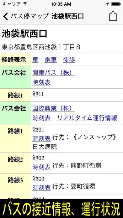 大都市圏のバス会社のバス停を網羅しているので、都市圏ならば知らない土地でもバスに乗れる