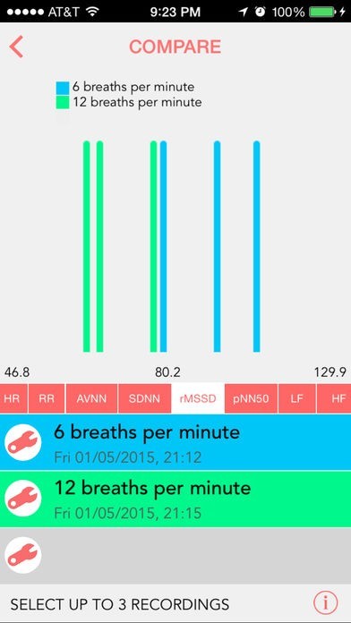 - comparison between up to 3 recordings lets you get a better understanding of autonomic regulation and sympathetic/parasympathetic activity under different contexts in a glance