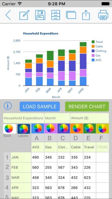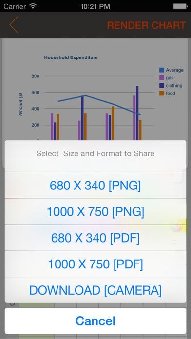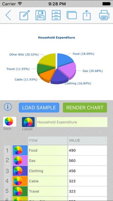 This App allows you to quickly Create, Print, Copy, Save or Share over 10 different types of Compelling Charts right on your iPhone or iPod Touch. The in-built color picker gives you the flexibility to define the look and feel of your charts through color customization. This App is ideal for Students, Businesses, and other areas where data visualization is key.