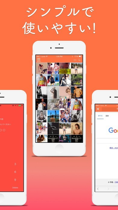 人に見られたくない写真に4ケタのパスワードでしっかりセキュリティをかけられる!
