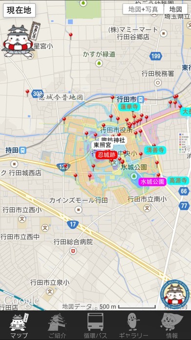 App Storeより引用うきしろちゃんが跡形も亡く消滅した忍城の痕跡へ案内してくれます。