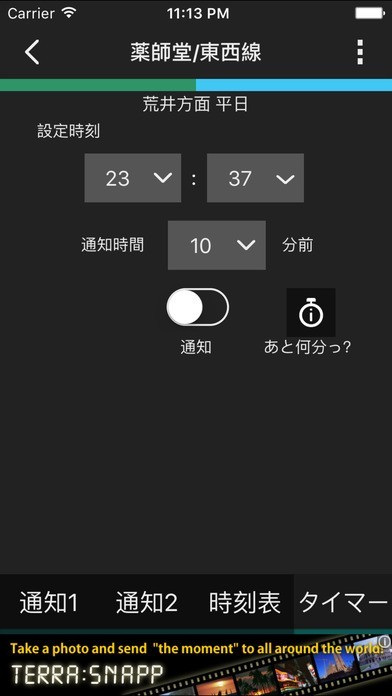 乗り遅れが心配な時は、乗る電車を登録しておけば発車時刻前に設定した時間前にタイマーで知らせてくれる!