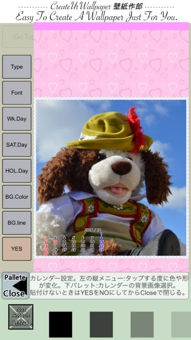 壁紙に様々なテキストを挿入する事が可能で、カレンダーが添付出来るのも面白いです。