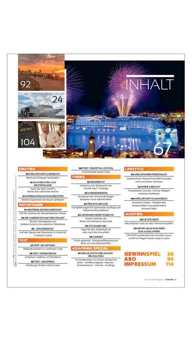 App Storeより引用CRUCERO ist das Reisemagazin für Kreuzfahrtliebhaber. Die Zeitschrift vereint das Beste aus den Bereichen Reise, Service und Lifestyle – professionell und glaubwürdig präsentiert in einem hochwertigen und lesefreundlichen Layout.