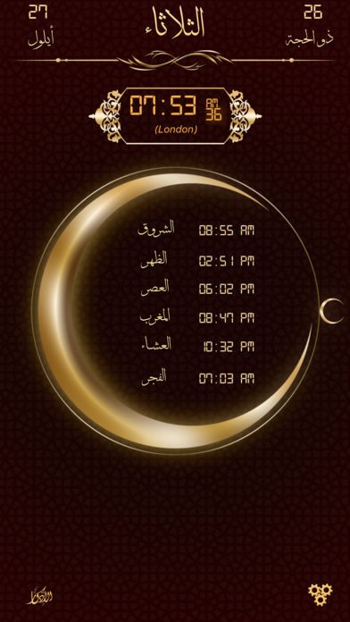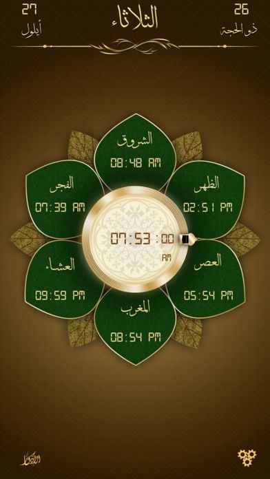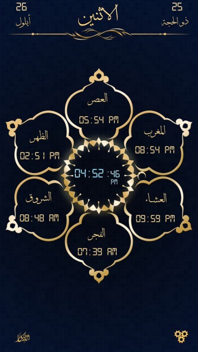 بإستخدام نظام تحديد الموقع يقوم التطبيق بعرض أوقات الصلاة (الفجر، الشروق، الظهر، العصر، المغرب، العشاء)