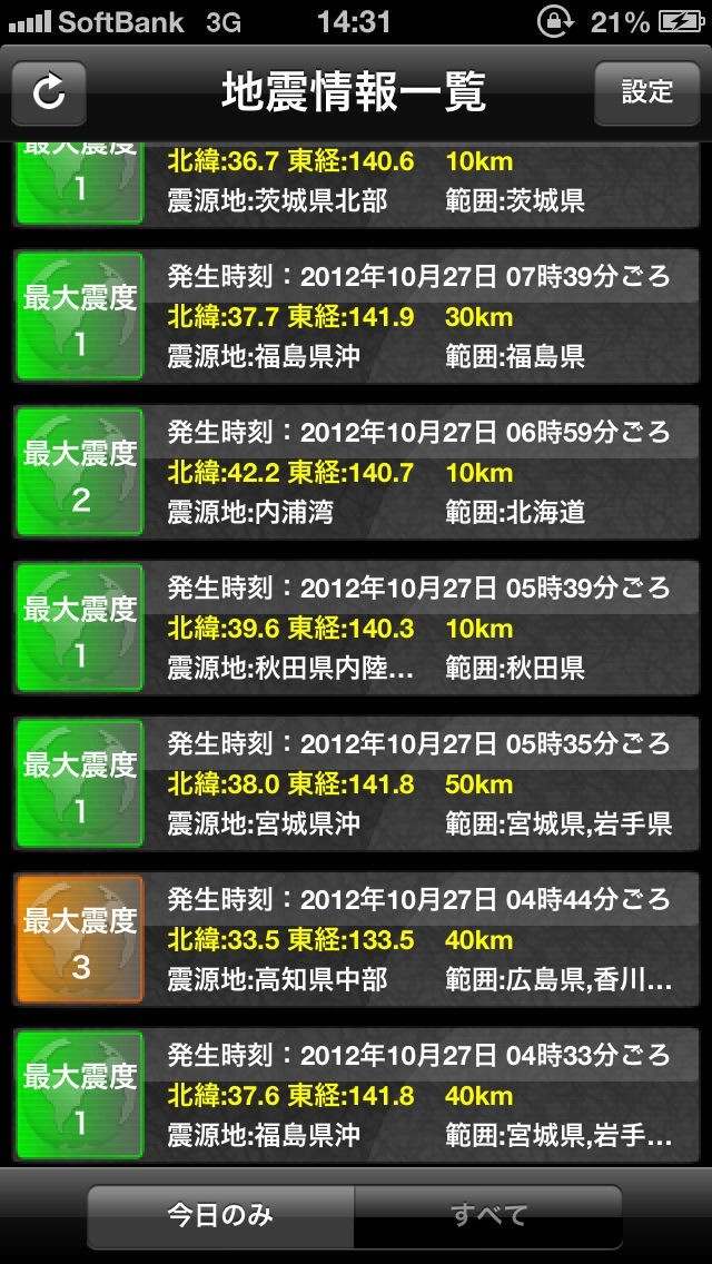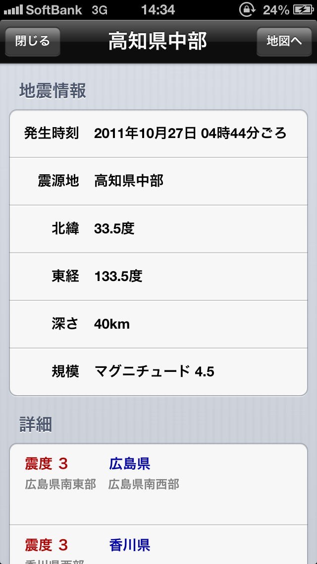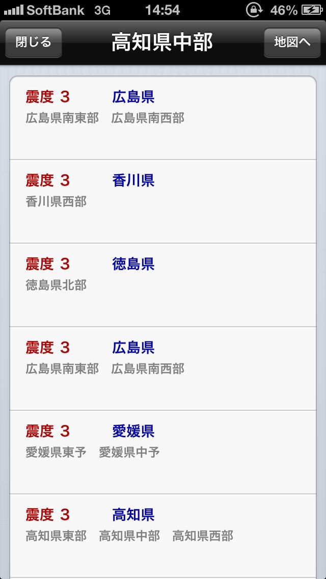 地震速報は流れても実際どこの地方なのか瞬時に分からないので。これは地図表示で分かりやすい。
