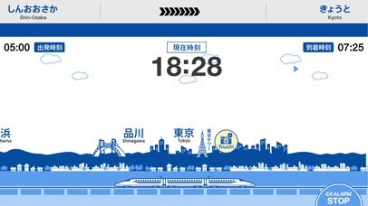 東海道新幹線をご利用の際、出発・到着の各駅と予定時刻を入力するだけで、沿線の風景や名物が次々に現れるアニメーションを楽しめるほか、自分の現在位置のおおよその目安にもなります。