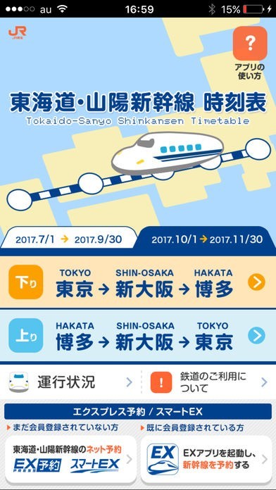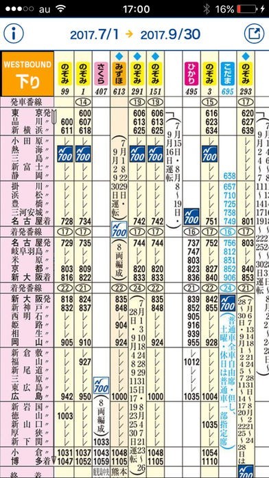 JR東海 東海道・山陽新幹線時刻表のスクリーンショット