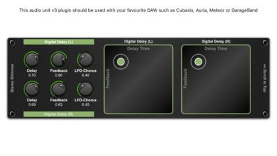 App Storeより引用This is an AUv3 compatible effect which must be used as plugin with your favourite DAW such as Cubasis, Meteor, Auria or GarageBand. It supports a modern graphical interface and presets with stereo meters for monitoring signal levels.