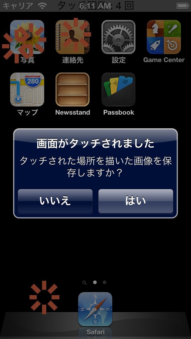 スマホがタップされた場所にマークが付いたスクリーンショットを画像保存してくれる