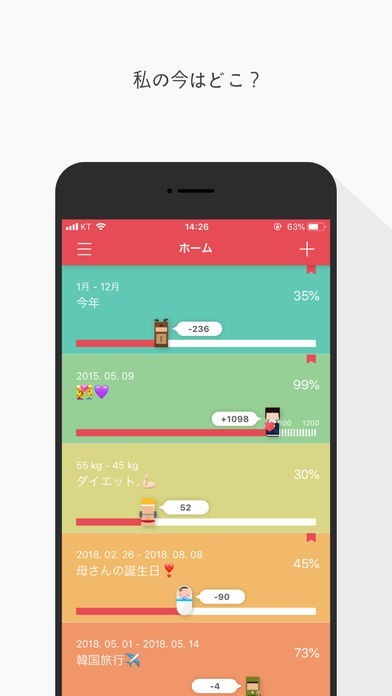 毎日の仕事も、長くて辛い学校の試験も、このアプリで期間をセットすれば、自分がどこまで進んだのかすぐにわかります。「あとこれくらいだから、もう少し頑張ろう」という気持ちになり、仕事や勉強をより早く終えることができます。