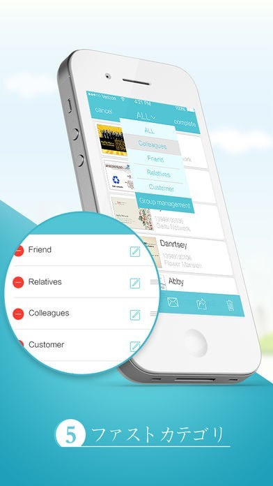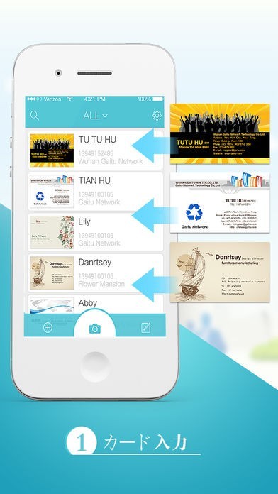 名刺に書かれている個人情報やデータを端末にまとめて保存出来るようになっています。部署や会社名でファイルを整理する事が可能なので、特定のデータを素早く表示させたい時に便利です。
